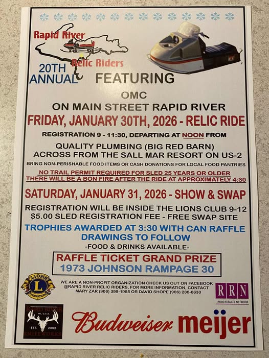 Raffle Ticket to Win a 1973 Johnson Rampage Snowmobile and other prizes- E - Rapid River Relic Riders