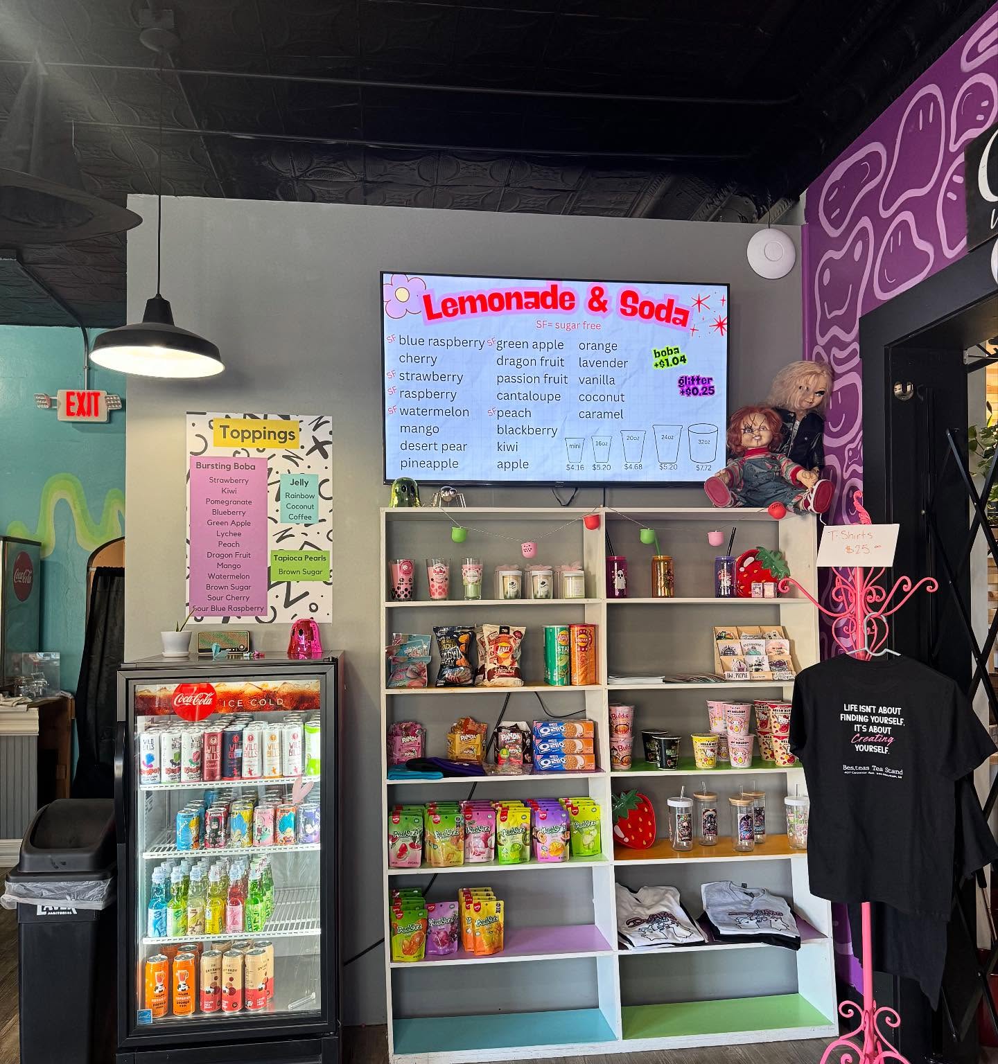 Dirty Soda’s like the zippy Ichigo Shortcake or the Uncle Slam with strawberry, cherry, glitter, lychee star & blueberry jellies!